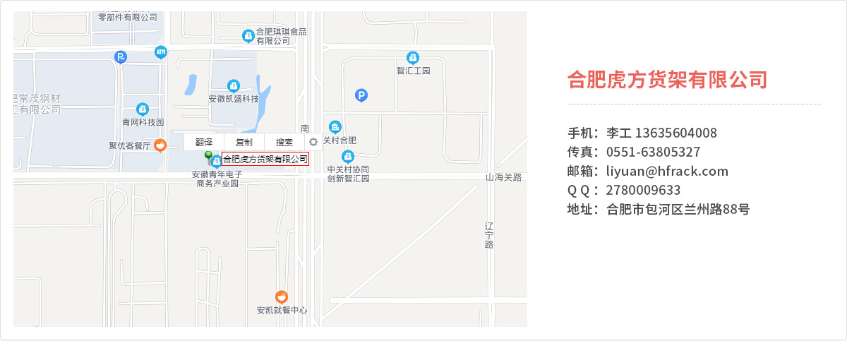 - 合肥虎方貨架有限公司從事經(jīng)營倉儲貨架、物流周轉(zhuǎn)及搬運(yùn)設(shè)備、倉庫管理系統(tǒng)等相關(guān)產(chǎn)品的生產(chǎn)、銷售、設(shè)計、安裝及采購集成服務(wù)。 公司主要產(chǎn)品:貨位式貨架、倉儲重型貨架、擱板式貨架、閣樓式貨架、駛?cè)胧截浖?、鋼平臺貨架、穿梭式...